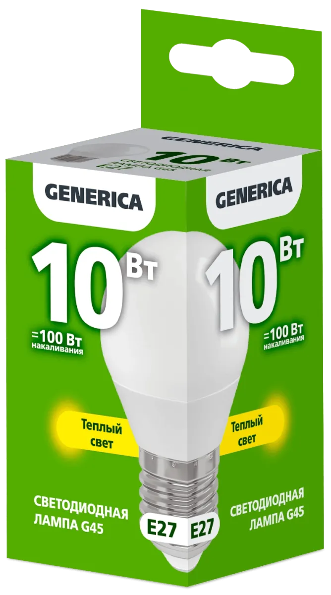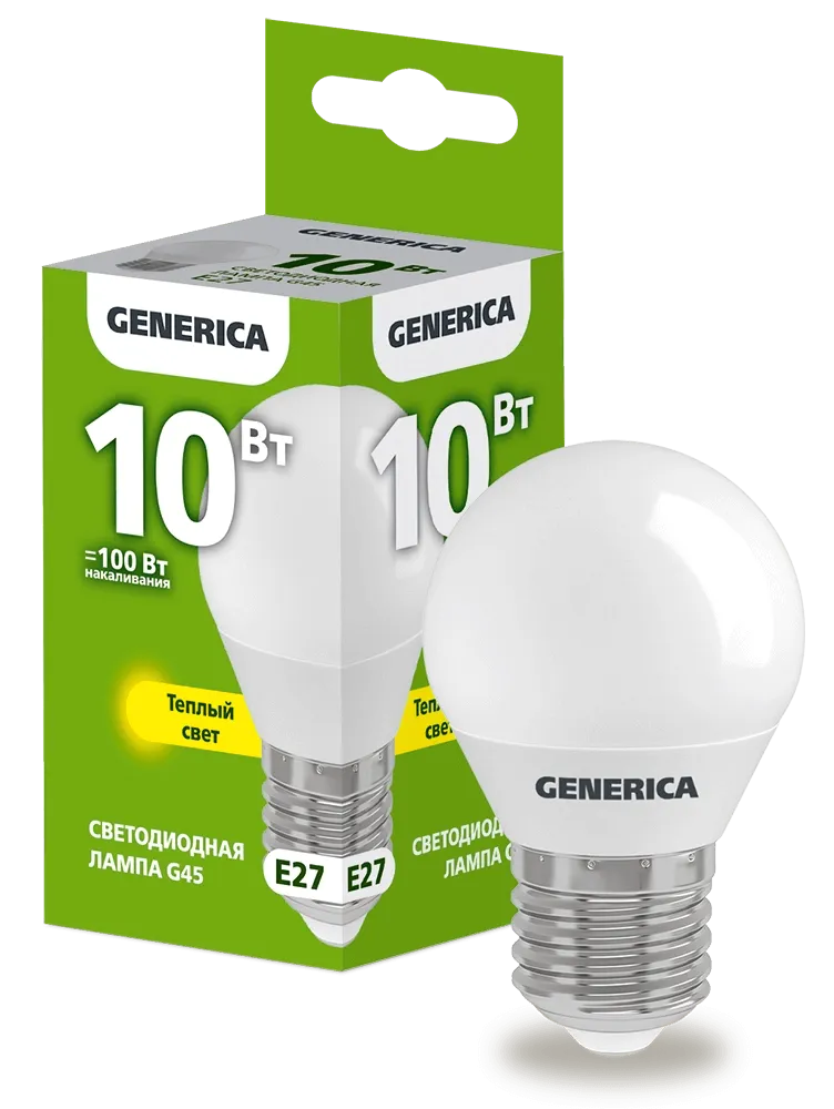 Лампа LED G45 шар 10Вт 230В 3000К E27 GENERICA