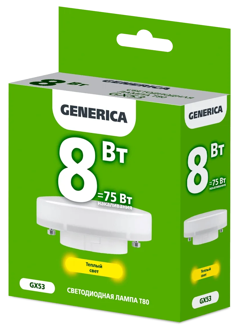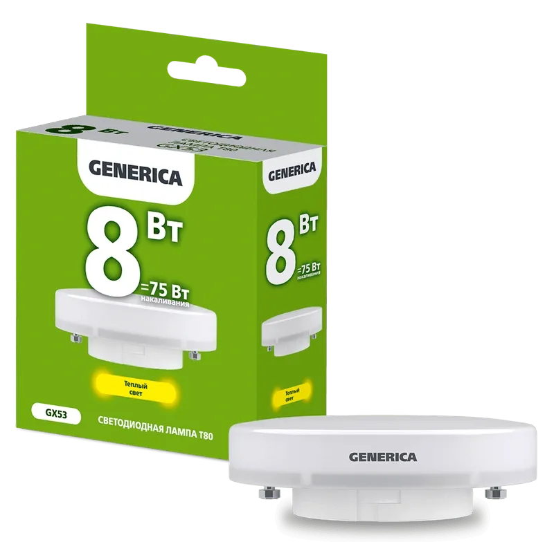 Лампа LED T80 таблетка 8Вт 230В 3000К GX53 GENERICA