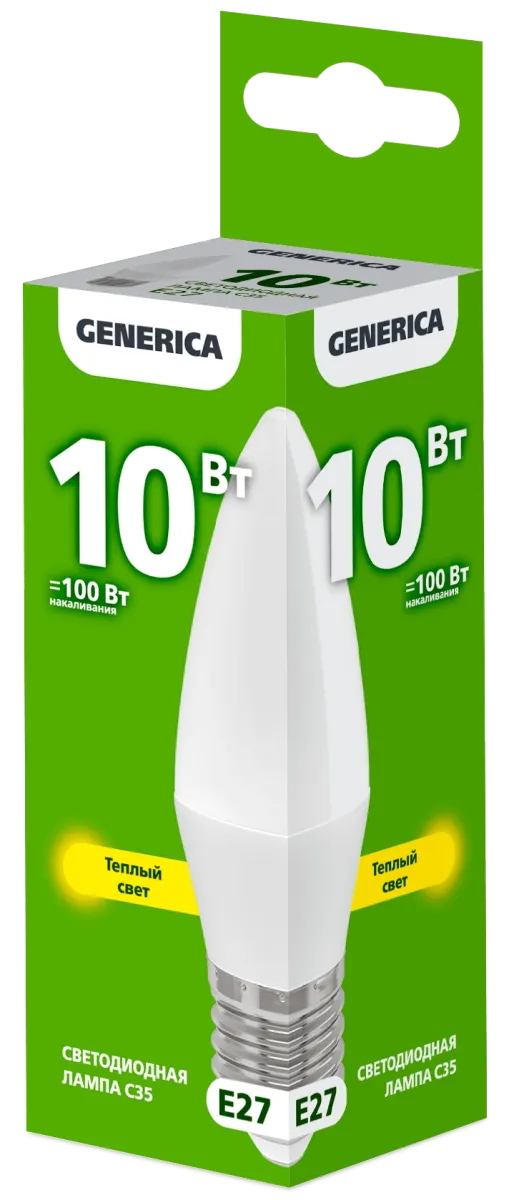 Лампа LED C35 свеча 10Вт 230В 3000К E27 GENERICA