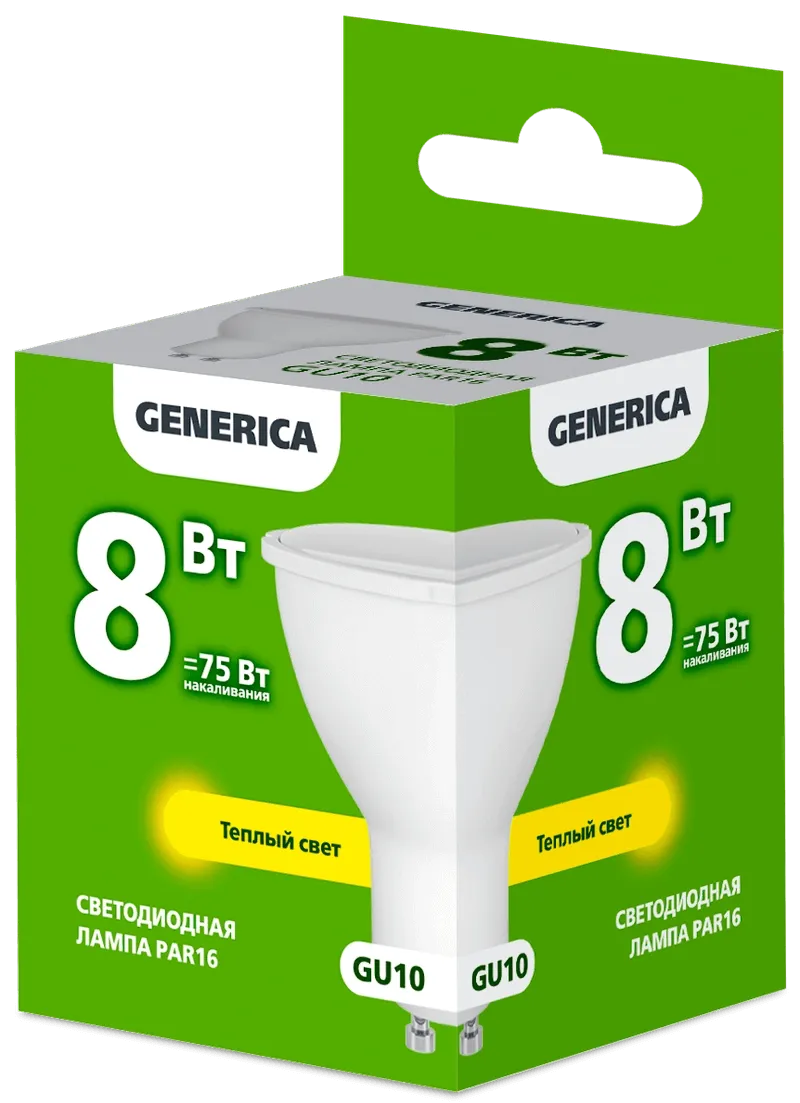 Лампа LED PAR16 софит 8Вт 230В 3000К GU10 GENERICA
