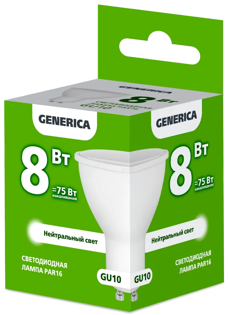 Лампа LED PAR16 софит 8Вт 230В 4000К GU10 GENERICA